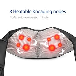 8 Deep-kneading Heating Nodes – These powerful nodes are ergonomic and provide deep relief for muscle tightness, aches, pains, and spasms for the neck, back, waist, abdomen, arms, and even legs. Turn on heat to soothe aching muscles and promote blood circulation.